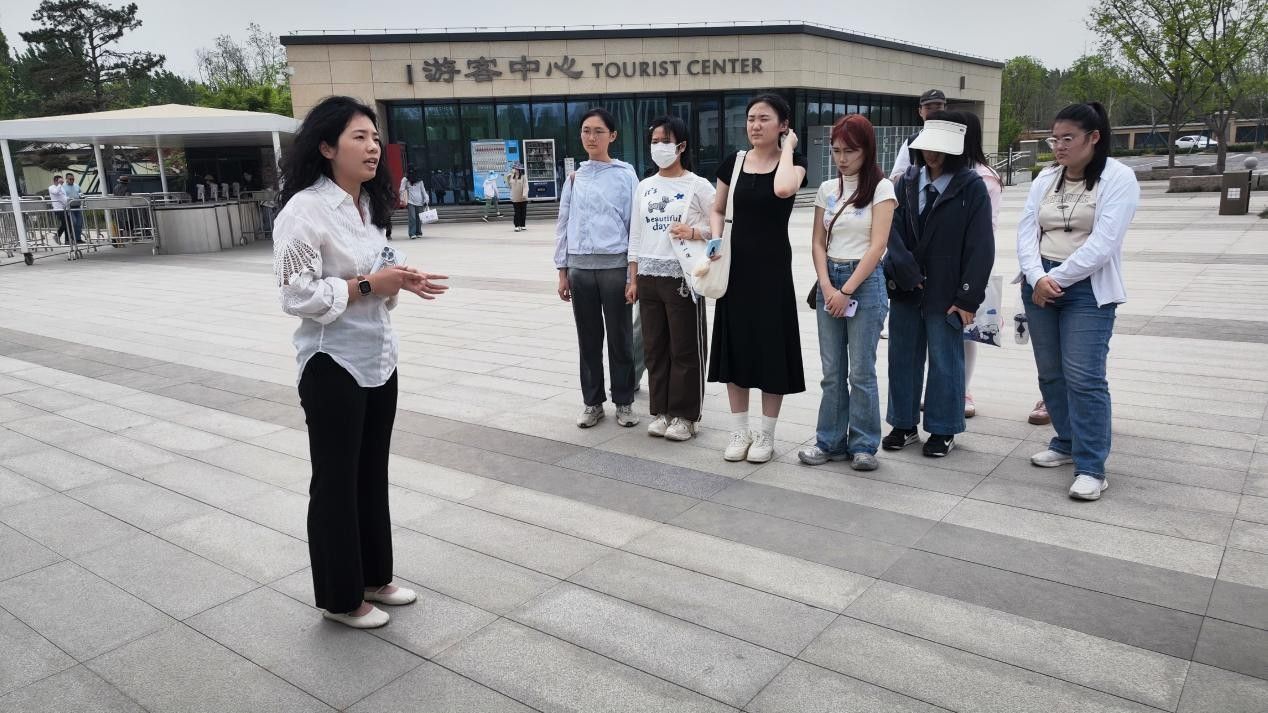 活动伊始,陕西考古博物馆办公室刘佳老师带领师生们参观了博物馆的行李寄存处、售票处和游客服务中心等场所,并围绕“博物馆志愿服务与践行青年责任”这一主题,介绍了陕西考古博物馆的建馆历程,阐释了文物作为中华优秀传统文化物质载体的重要作用,呼吁青年学子要坚定文化自信,砥砺强国之志。