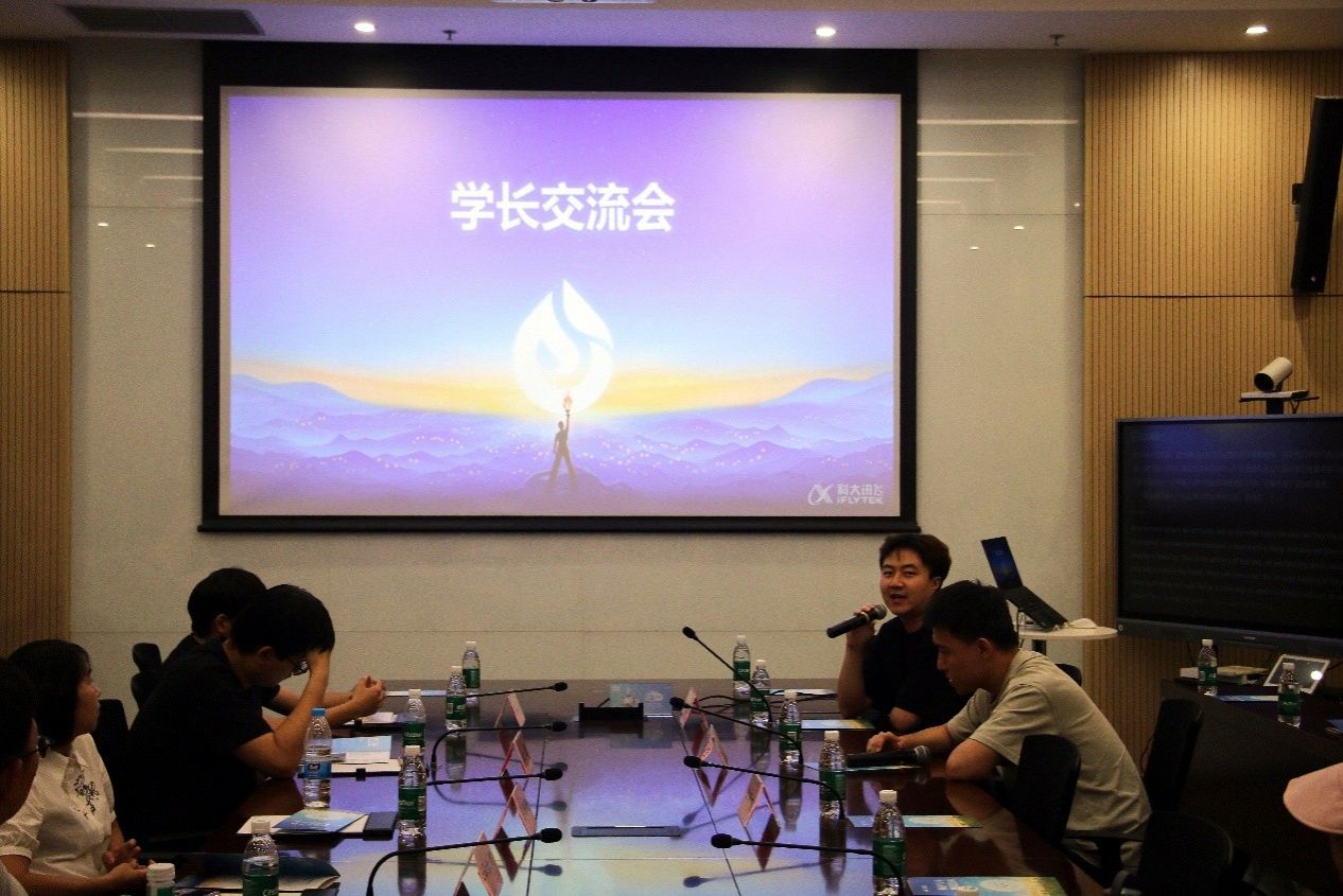 随后是学长交流环节,入职科大讯飞公司的2023届员工齐海博、2024届员工范希钰为师生们分享了自己学习、科研、求职、入职等经历和感受。交流环节现场气氛热烈,同学们积极提问,两位学长结合自己的经历耐心地向同学们做了解答,激发了大家对于未来职业发展的思考。