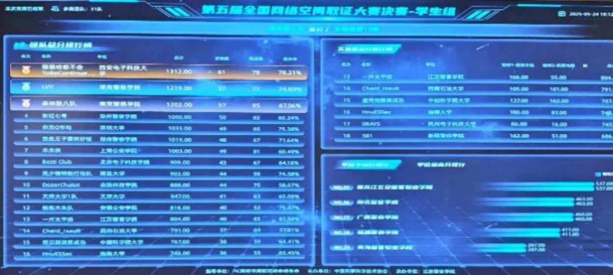 (通讯员:王默轩)在当今数字化时代,电子数据取证作为维护网络空间安全、打击网络犯罪的关键技术,愈发受到各界关注。近期,多项电子数据取证领域的顶级赛事相继举办,ag旗舰厅官网的学子们凭借扎实的专业知识、卓越的实践能力和顽强的拼搏精神,在赛场上斩获佳绩,为校争得荣誉。