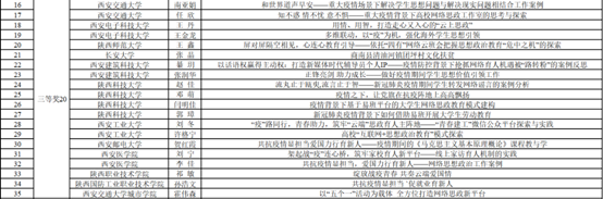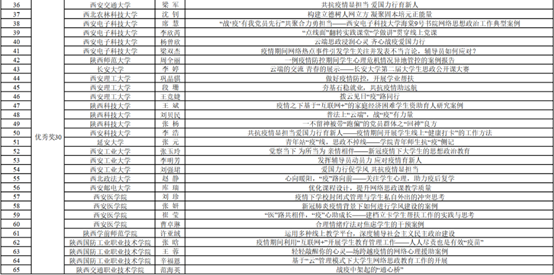 据悉,本次活动由陕西高校网络思想政治中心组织,以“共抗疫情显担当 爱国力行育新人”为主题,共收到省内41所高校的207件作品,最终决出一等奖5项、二等奖10项、三等奖20项、优秀奖30项。