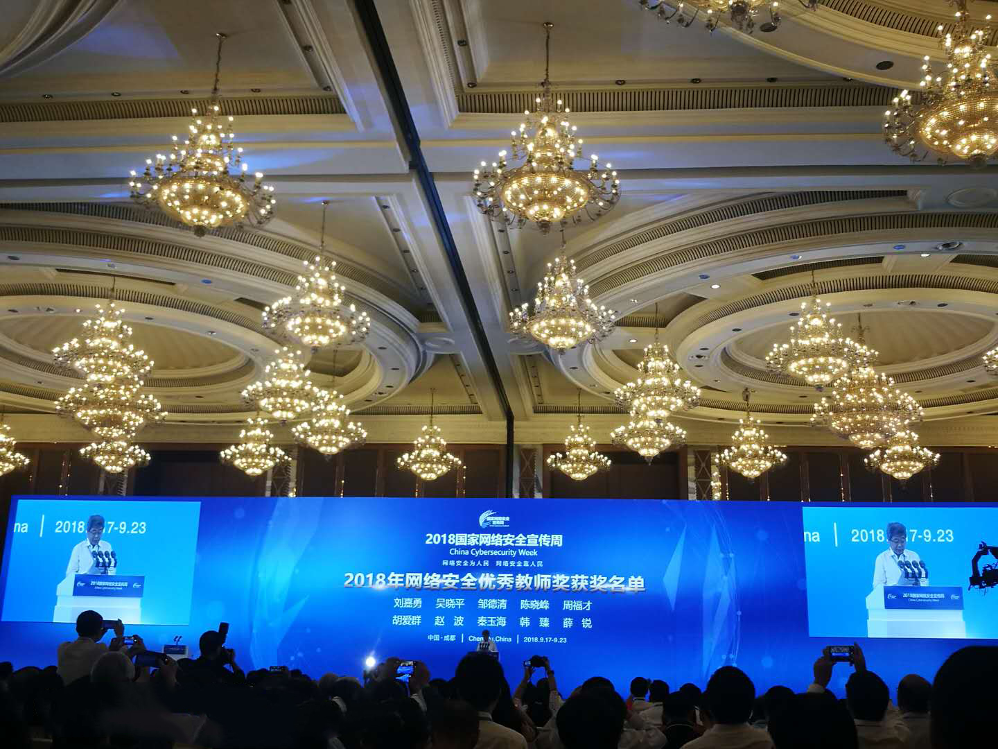 9月19日,2018年国家网络安全宣传周开幕式在成都市世纪城新国际会展中心正式开幕。中央政治局委员,中央书记处书记,中央宣传部部长黄坤明出席开幕式并发表重要讲话,教育部部长陈宝生宣布网络安全优秀人才和优秀教师名单。ag旗舰厅官方副经理陈晓峰教授荣获2018年“网络安全优秀教师奖”。