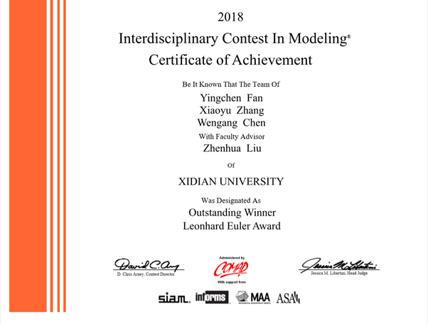 2018年美国国际老员工数学建模竞赛(MCM/ICM)成绩日前揭晓,ag旗舰厅官方网站范英晨、张小玉和陈文岗所在队伍凭借在D题中的优异表现,获得ICM最高奖项Outstanding Winner(特等奖),并获得Leonhard Euler award(冠名奖)。这是公司继2014年和2015年后,时隔两年第三次获得Outstanding Winner,也是公司首次获得冠名奖。