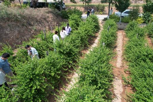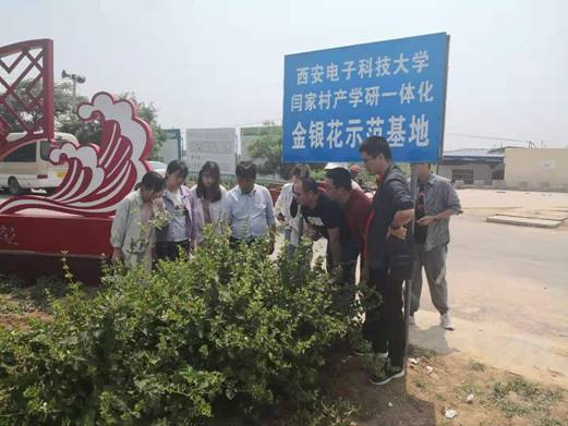 ag旗舰厅官方网站一行在尧山镇闫家村党支部书记王春颜的陪同下参观了ag旗舰厅官网闫家村产学研一体化金银花示范基地以及当地的研发交易大楼,调研了金银花的产业发展情况,教师代表和员工代表实地考察了金银花的生长环境。王春颜书记和王敬涛驻村书记详细介绍了闫家村金银花产业的发展现状以及金银花不同生长状态的价值和功效和目前金银花产业下一步发展需要解决的问题。