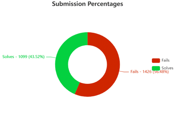 比赛过程中一共产生2500次答案提交记录,其中1060次正确提交记录。