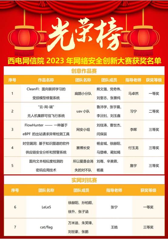 ag旗舰厅官网7支队伍脱颖而出,在创意作品赛中获奖5项(一等奖1项、二等奖1项、三等奖3项),实网对抗赛中获奖2项(一等奖1项、三等奖1项),优秀指导教师2项(马卓然、张宁),公司获得大赛优秀组织单位奖项,西电队伍再创佳绩!