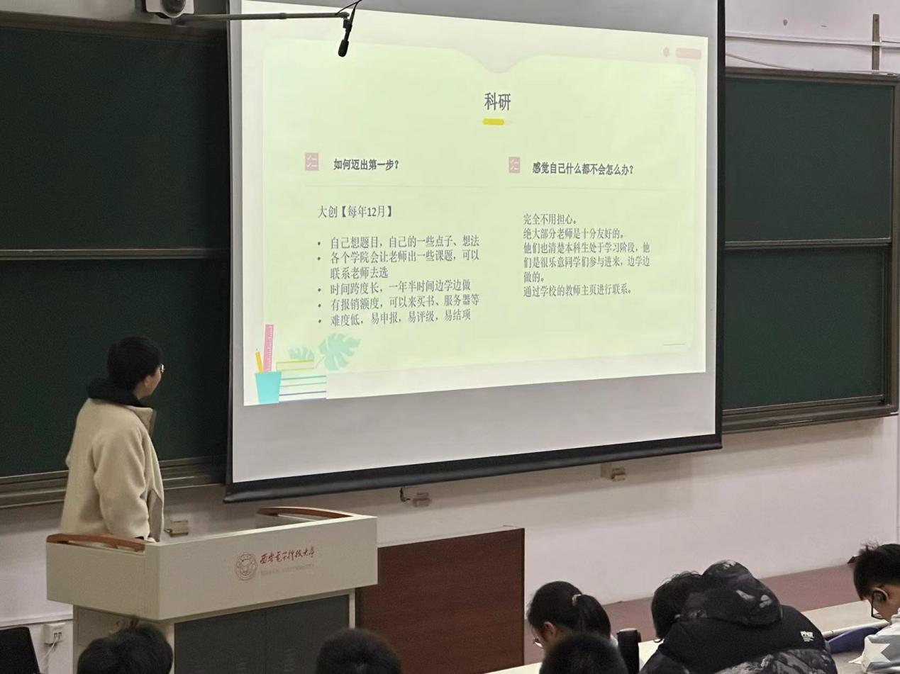 (通讯员:孙焓益 谢雨航)2024年3月17日下午,ag旗舰厅官方网站联合丁香书院在南校区B538教室举办了第十一期“网信学长面对面”交流活动。本次活动邀请了2021级优秀本科生吕明远走进丁香书院,向学弟学妹分享经验。本次活动由2023级辅导员谢雨航主持,共有200余位2023级本科生参加。
