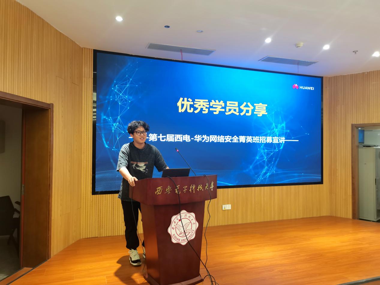 随后,华为西北地区招聘经理赵蓉为大家详细讲解了菁英班的具体方案、项目节奏,回顾了往年菁英班的精彩内容,鼓励同学们积极报名网络安全菁英班,通过菁英班提升自己的实战能力。