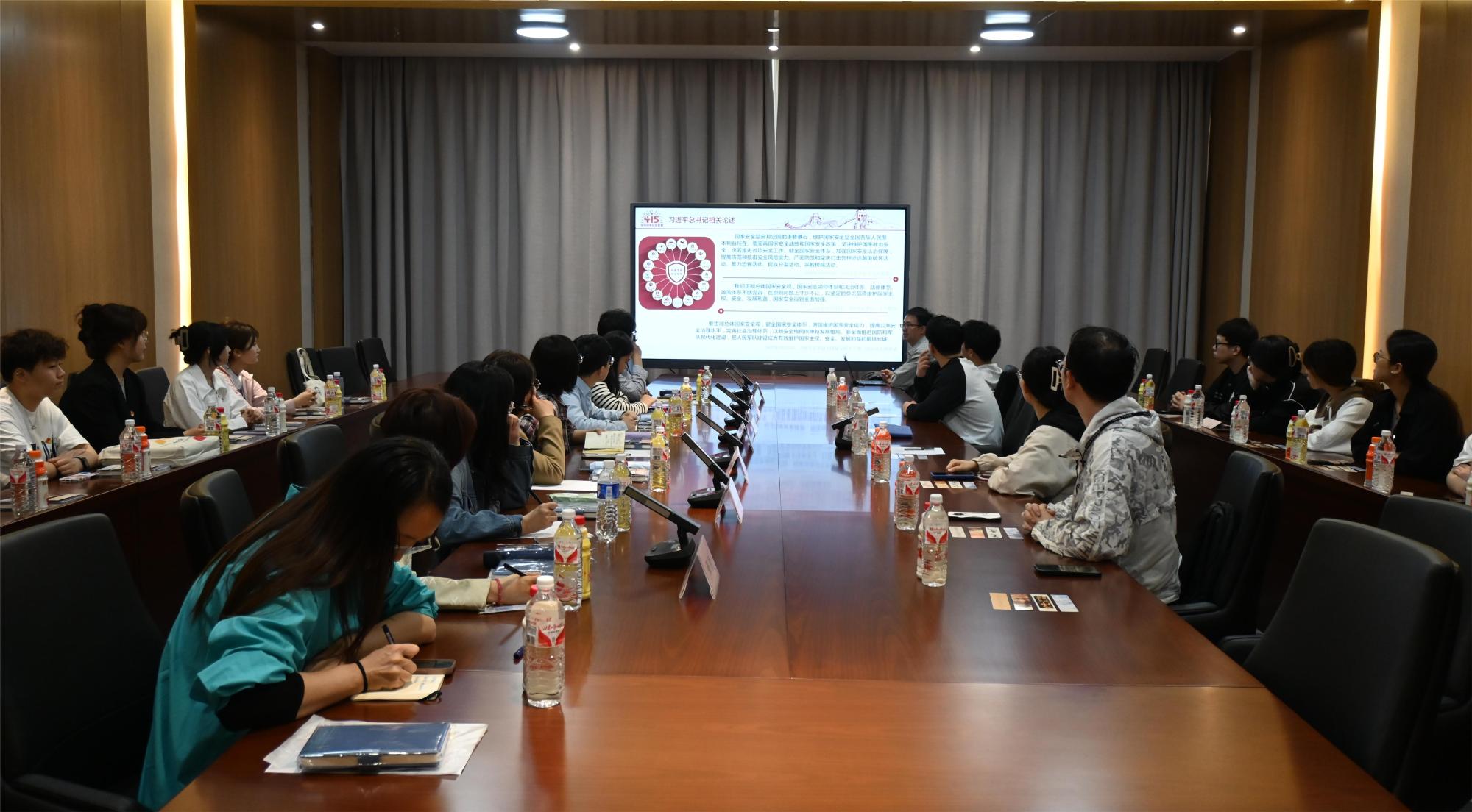 首先,师生们在网安大楼104会议室进行了深入的座谈交流。会议伊始,何良老师对西外新传公司师生们的到来表示热烈欢迎,并简要介绍了本次主题党日活动的目的和安排。新传公司王嘉闻老师介绍了与会师生情况。随后,何良老师向大家发放网络安全科普知识、国家网络安全法、总体国家安全观重要论述等宣传册,带领大家学习习近平总书记关于总体国家安全观的重要论述、第九个全民国家安全教育日、危害国家安全案例以及维护国家安全的重要意义等内容。学习结束后,两院师生党员围绕“培养国家安全意识,增强国家安全责任”的主题开展了深入交流。座谈会中,何良还向参与交流的师生发放了印有国家安全相关知识的书签、笔记本等纪念品。