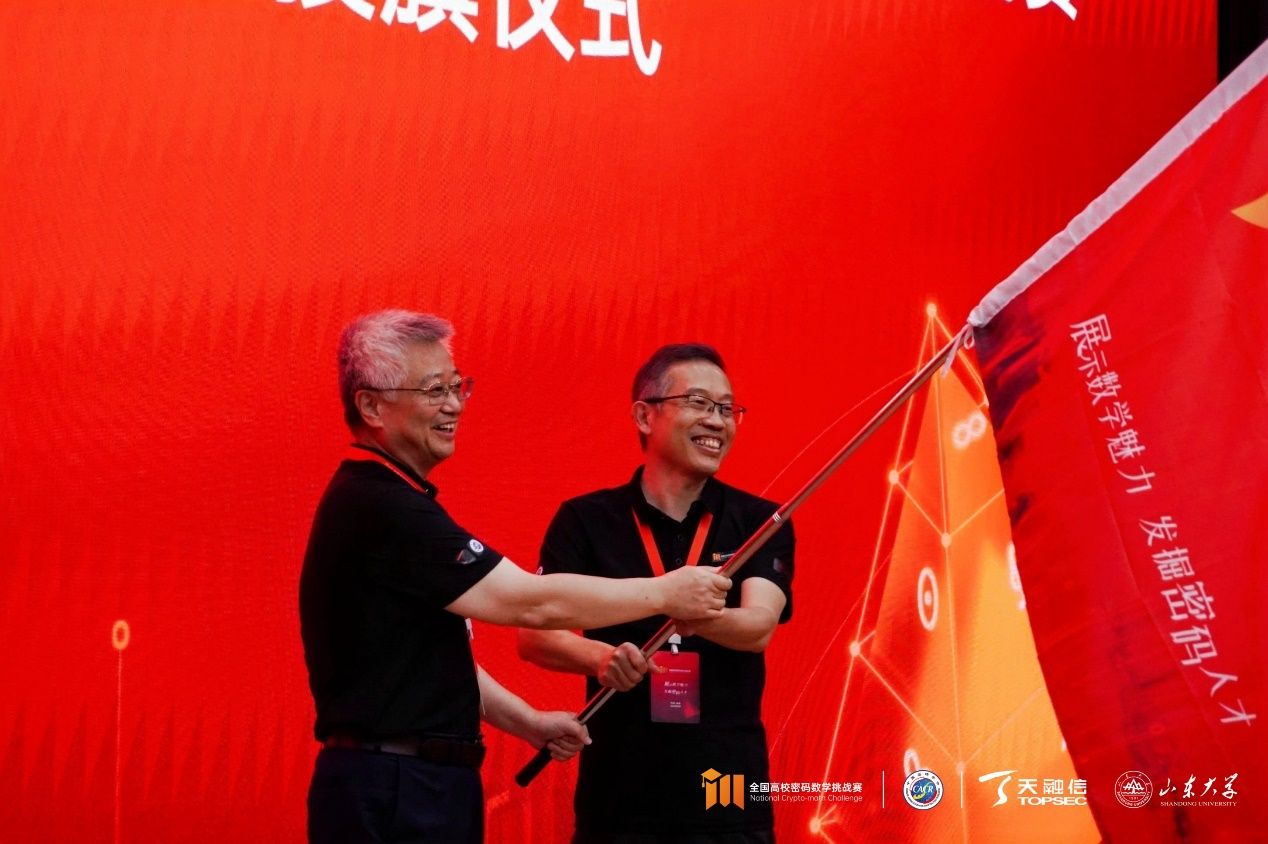 同时,大赛举行了第十届(2025年)全国高校密码数学挑战赛启动仪式,赛旗的传递标志着2025赛季正式拉开帷幕,挑战赛赛旗由全国高校密码数学挑战赛组织委员会主任委员、北京航空航天大学教授刘铁钢交予公司ag旗舰厅官方网站执行经理李晖教授。标志着第十届全国高校密码数学挑战赛将由公司承办。