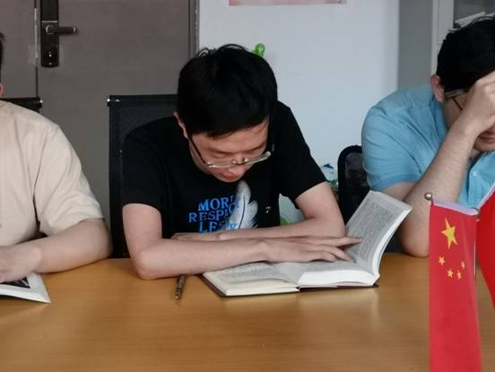 读书活动开始前,由韦薇同志带领大家回顾上一章“夺取新民主主义革命的全国性胜利”,面对敌强我弱的严峻形势,在毛泽东的领导下,团结一切可以团结的力量,建立了广泛的人民民主统一战线,取得了革命的胜利,为新中国绘制了蓝图。之后,同志们认真阅读《中国共产党简史》第五章“中华人民共和国的成立和社会主义制度的建立”,并在书本上标注出重点内容,记录学习心得。