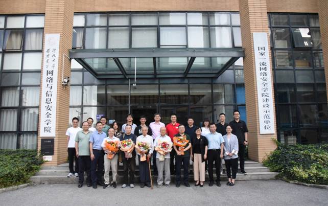 在“感恩”环节,马建峰、李晖、张美茹为老专家们献上鲜花;优秀教师代表李兴华、朱辉、姜奇、曹进为马建峰、李晖两位老师献花;青年教师代表宋祁朋、魏晓敏、赵臻、马如慧为李兴华、朱辉、姜奇、曹进四位老师献花。鲜花含深情,芬芳报师恩,鲜花的传递,展现了老中青三代网信人的传承与交接,感恩与担当。