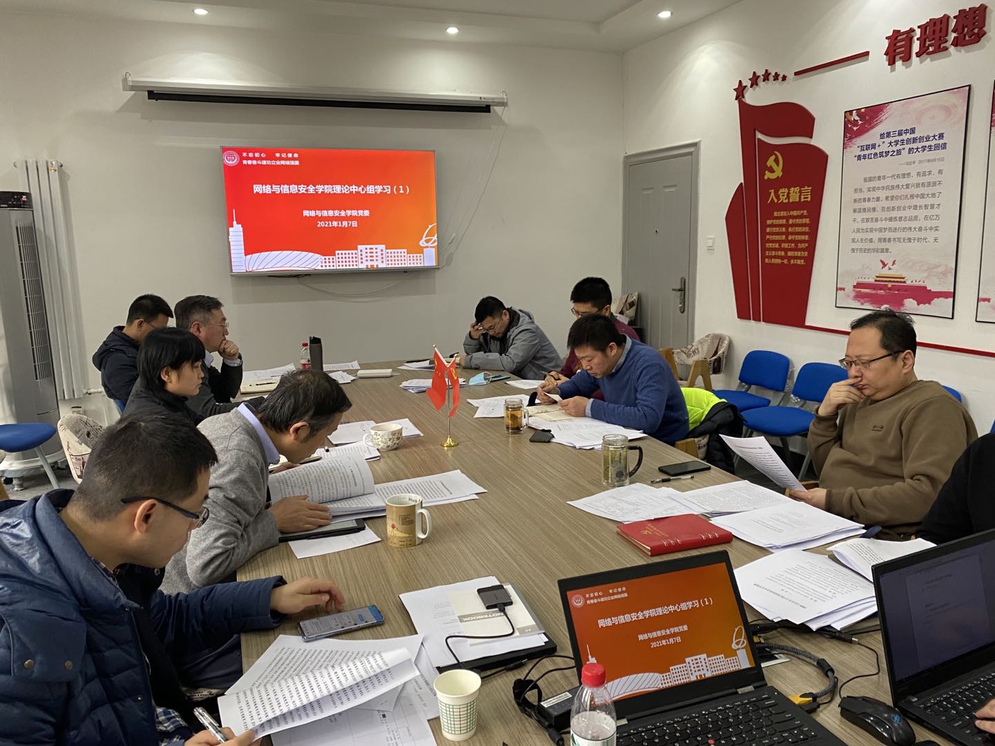 (通讯员 赵秀臣)为扎实做好2020年度公司领导班子民主生活会工作,2021年1月7日下午,网络与信息安全公司党委在南校区行政辅楼215召开第一次党委理论中心组学习会议。ag旗舰厅官方网站经理胡瑞敏、执行经理李晖、党委书记张美茹、党委副书记杨寒、副经理李兴华、副经理豆谊博、副经理杨超、组织员鞠波、信安党支部书记曹进参会。张美茹主持会议。