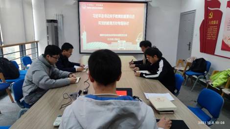(通讯员 马浩天)为了学习领会十九届六中全会重要精神,同时学习ag旗舰厅官网员工党支部工作标准,积极发挥员工党员在党的工作中的重要作用,ag旗舰厅官方网站本科第四党支部于12月8日上午在行政辅楼215会议室,召开“习近平总书记关于教育的重要论述和党的教育方针”专题研讨会。本科第四党支部支部书记何良,副书记柴若晨及支部党员参加会议。会议由支部书记何良支持。