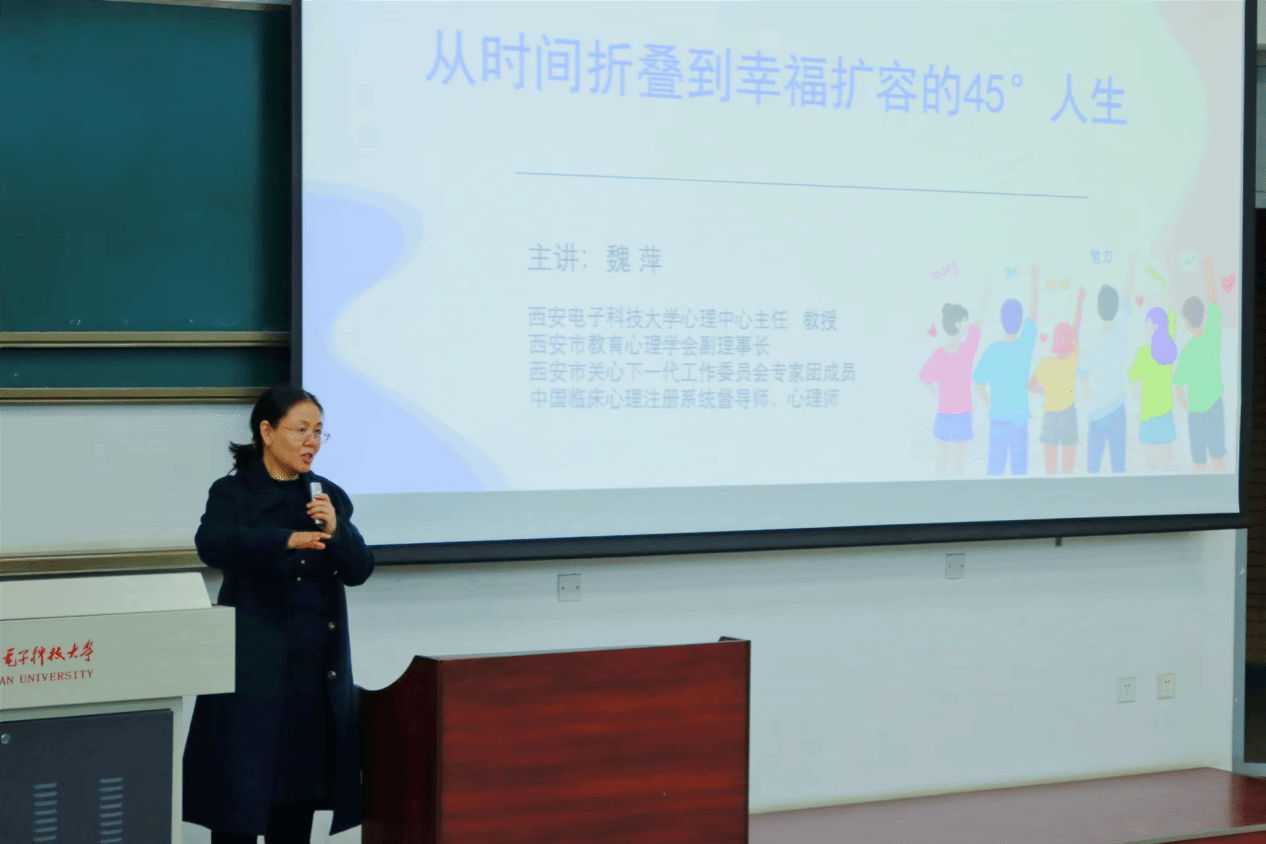 讲座的最后,魏萍教授以“时光折叠处皆有花开,幸福扩容时心驻云台”的美好祝愿结束了宣讲。她鼓励同学们在日常生活中积极寻找和创造幸福时刻,享受美好生活。