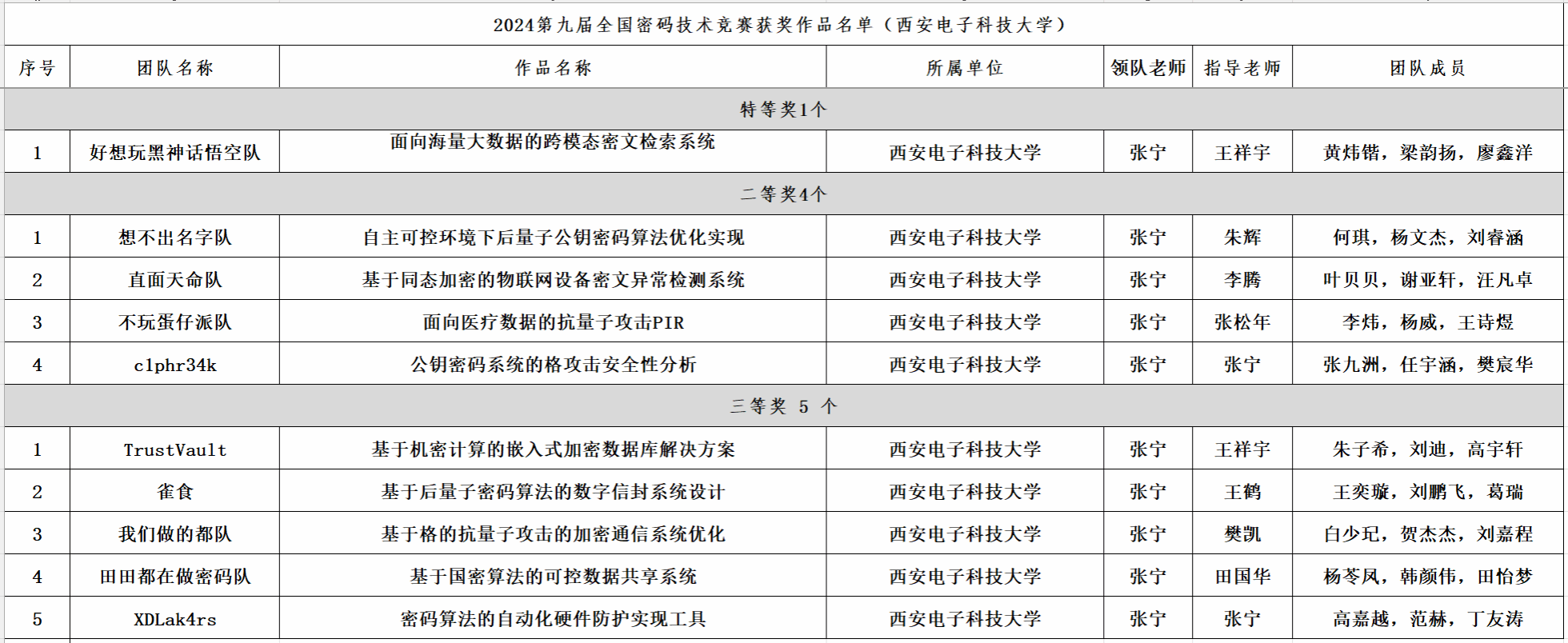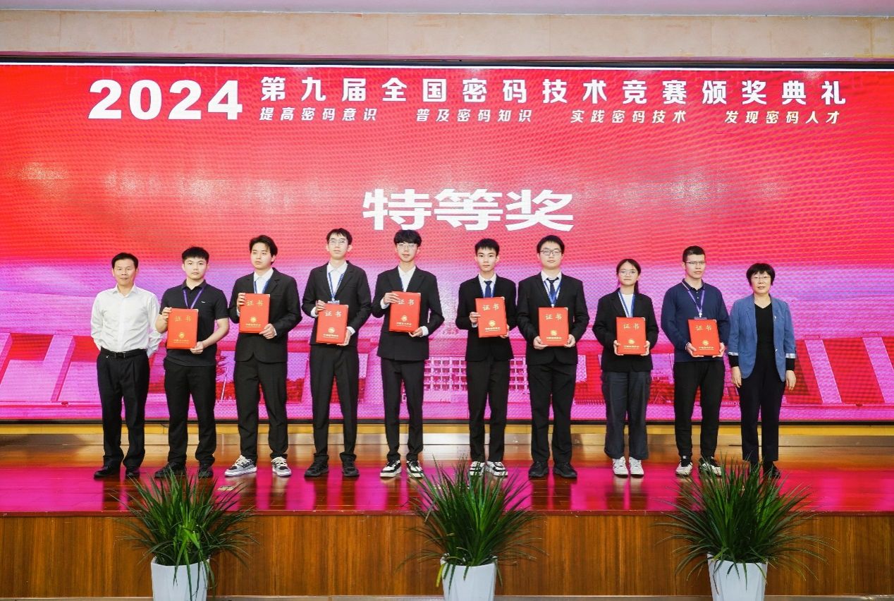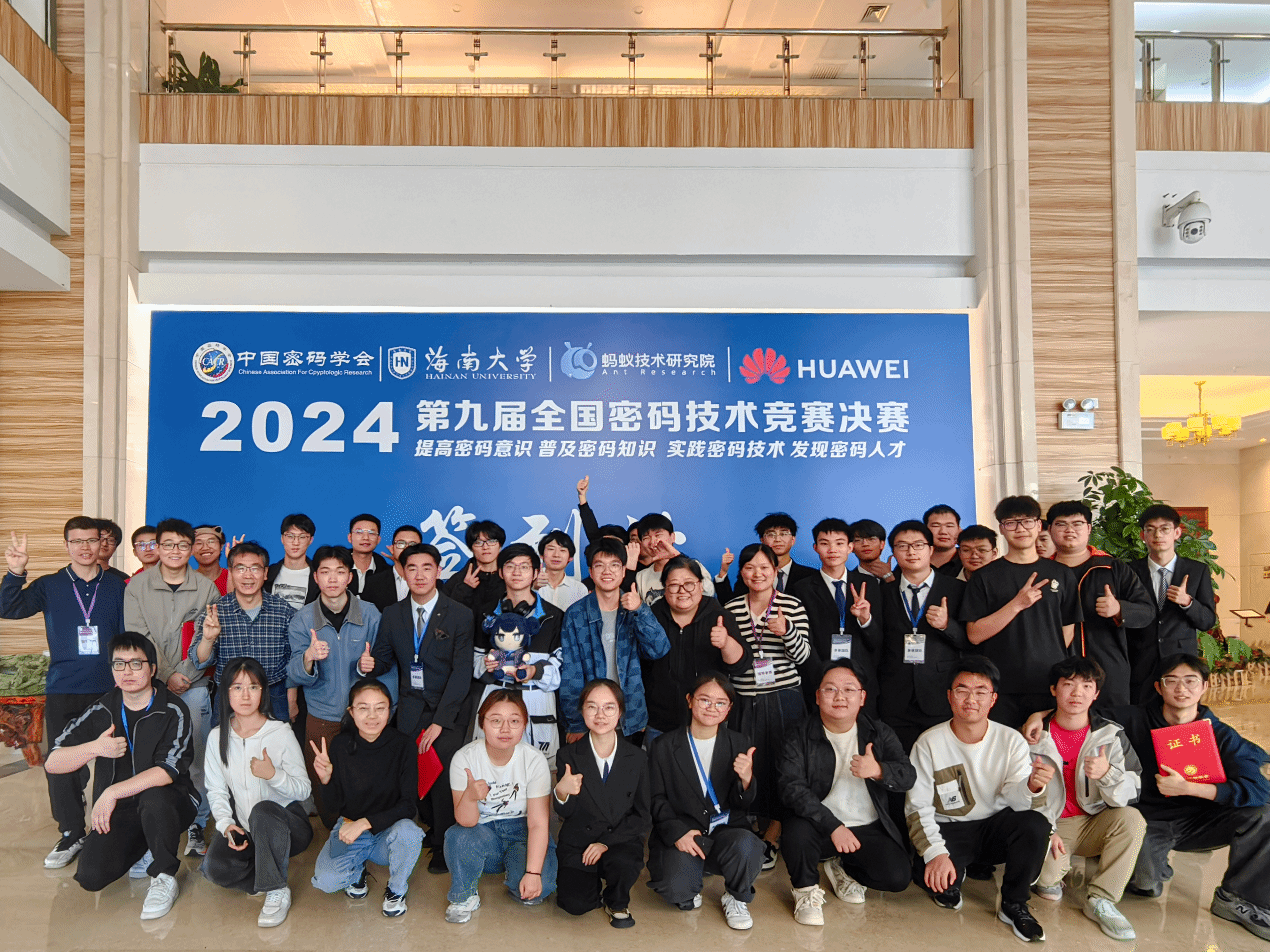 (通讯员 廖鑫洋 张宁)2024年11月30日,第九届全国密码技术竞赛决赛在海南大学顺利落幕。西电学子再获佳绩,共获特等奖1项、二等奖4项、三等奖5项。获奖情况在全国高校中位居前列。其中由ag旗舰厅官方王祥宇副教授指导,2021级本科生黄炜锴、2022级本科生廖鑫洋、2023级本科生梁韵扬组成的参赛队伍荣获特等奖,时隔五年,ag旗舰厅官网在全国密码技术竞赛上又一次荣获特等奖。