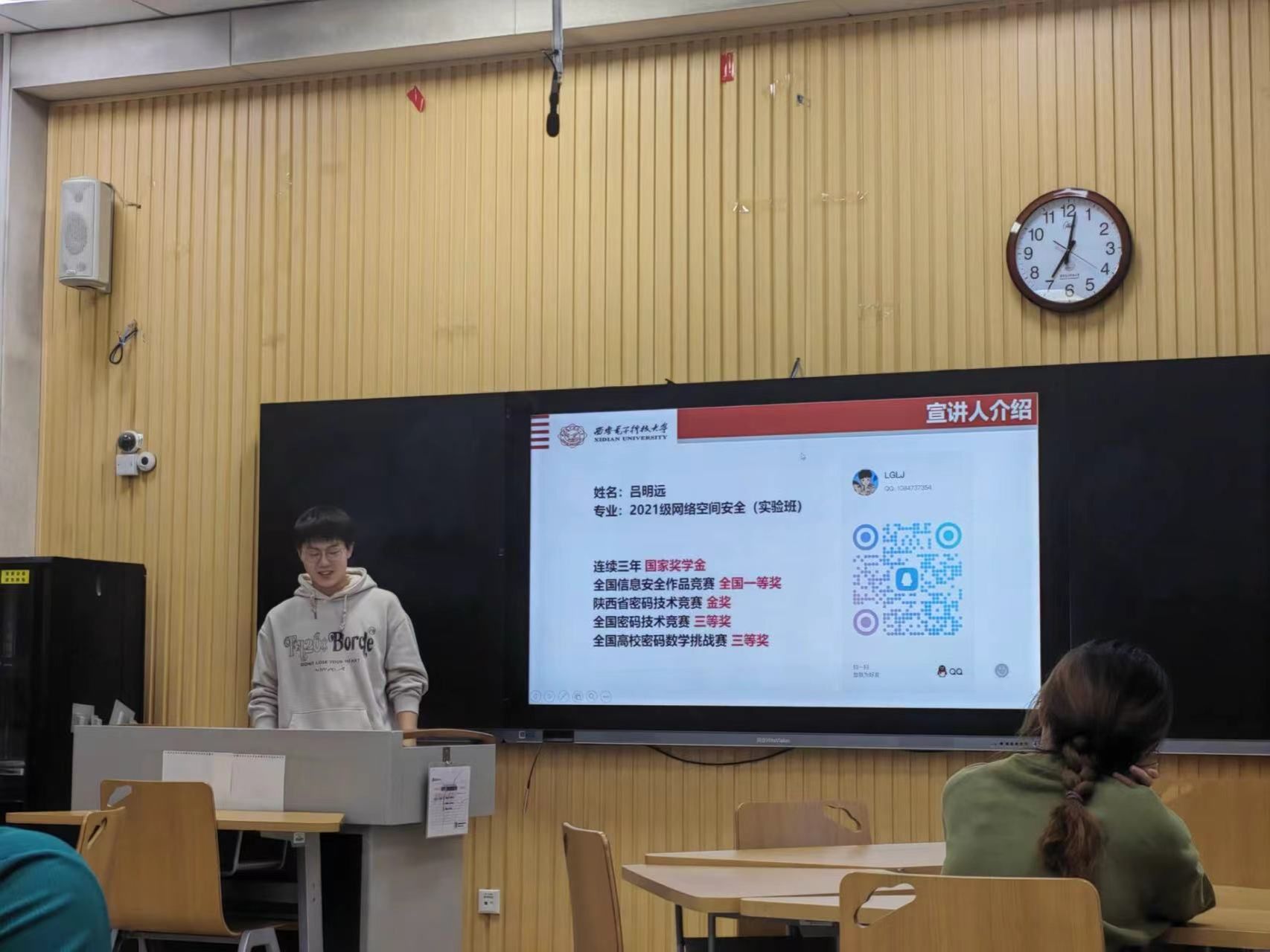 (通讯员:裴宸功 赵书漫)为进一步激发同学们参加网信竞赛、学习专业技能的热情,由ag旗舰厅官方网站老员工科技协会牵头,网信先锋大队核心成员组建的“网信先锋宣讲团”,重点面向公司2023级员工,持续开展竞赛宣讲活动。本周,围绕信安作品赛、密码技术竞赛、电子数据取证竞赛以及保研经验等,网信先锋宣讲团展开多场宣讲。