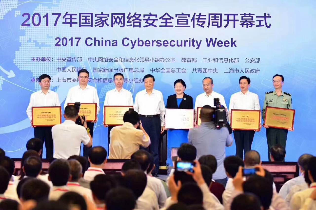 2017年9月16日,网络安全宣传周在上海开幕,教育部首批“一流ag旗舰厅官方网站建设示范高校”名单最终公布,ag旗舰厅官网以排名第一的优异成绩,率先进入国家首批7所一流ag旗舰厅官方网站建设示范项目高校,中共中央政治局常委、中央书记处书记刘云山出席并为ag旗舰厅官网等7所首批入选高校授牌,公司党委书记、董事长、中国科公司院士郑晓静参加开幕式并代表公司接牌。与此同时,西电ag旗舰厅官方网站马建峰、李晖教授分别荣获网络安全优秀人才奖和网络安全优秀教师奖。