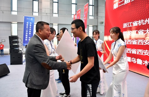安恒信息技术股份有限公司总裁范渊为获得大赛三等奖的同学颁奖