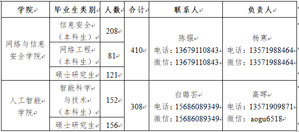 为进一步满足广大用人单位对网络空间安全领域和人工智能领域专业人才的招聘需求、做好2020届毕业生就业工作,ag旗舰厅官方、人工智能公司计划于2020年4月10日~4月15日举办空中联合招聘活动,为用人单位与毕业生搭建信息交流平台,增进了解、促进沟通,并提供精准信息匹配与推送服务。现诚邀各单位参加,相关事宜如下: