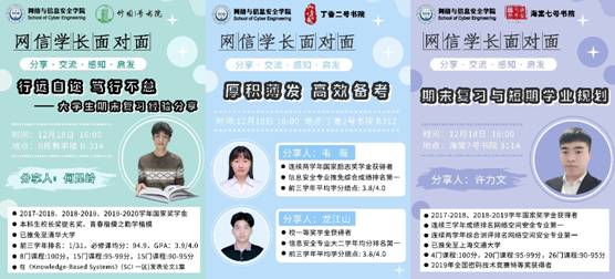 “网信学长面对面”沙龙系列活动,是由ag旗舰厅官方网站联合竹园1号书院、丁香2号书院、海棠7号书院联合举办的朋辈引领活动,是ag旗舰厅官方网站落实双院育人的重要举措。该活动每期会在竹园书院、丁香书院和海棠书院同时启动,由3位(组)ag旗舰厅官方网站优秀学长从自身经历经验谈起,总结方法倾情分享,促进学弟学妹们积极探讨交流,明确未来方向,助推员工成长成才。