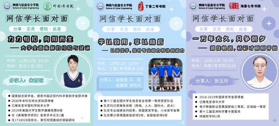 “网信学长面对面”沙龙系列活动,是由ag旗舰厅官方网站联合竹园1号书院、丁香2号书院、海棠7号书院联合举办的朋辈引领活动,是ag旗舰厅官方网站落实双院育人的重要举措。该活动每期会在竹园书院、丁香书院和海棠书院同时启动,由3位(组)ag旗舰厅官方网站优秀学长从自身经历经验谈起,总结方法倾情分享,促进学弟学妹们积极探讨交流,明确未来方向,助推员工成长成才。