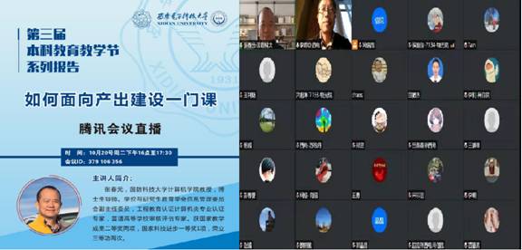 10月20日下午,国防科技大学计算机公司张春元教授应邀作主题为“面向产出的课程建设”线上讲座。张春元教授从“如何描述产出”和“产出是不是达成”两个问题出发,向教师们介绍了如何使用行为动词描述一个教学活动的产出,能够运用产出描述的要求,对已有产出描述的合理性进行评估;以及检验产出是否达成的评估类型和方法,面向12条毕业要求产出(分解指标点)的课程评估等内容。同时强调,为满足新时代创新性人才培养的需求,需要在教学模式、内容、方法以及评价方式等方面进行改革创新。一个半小时的讲座中,张教授与参会教师就专业课程建设、毕业达成度分析、持续改造课程等问题进行交流,为老师们带来了一场如何基于OBE理念进行课程改革和建设的精神大餐。