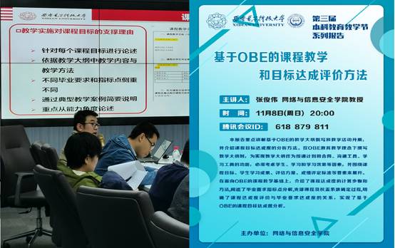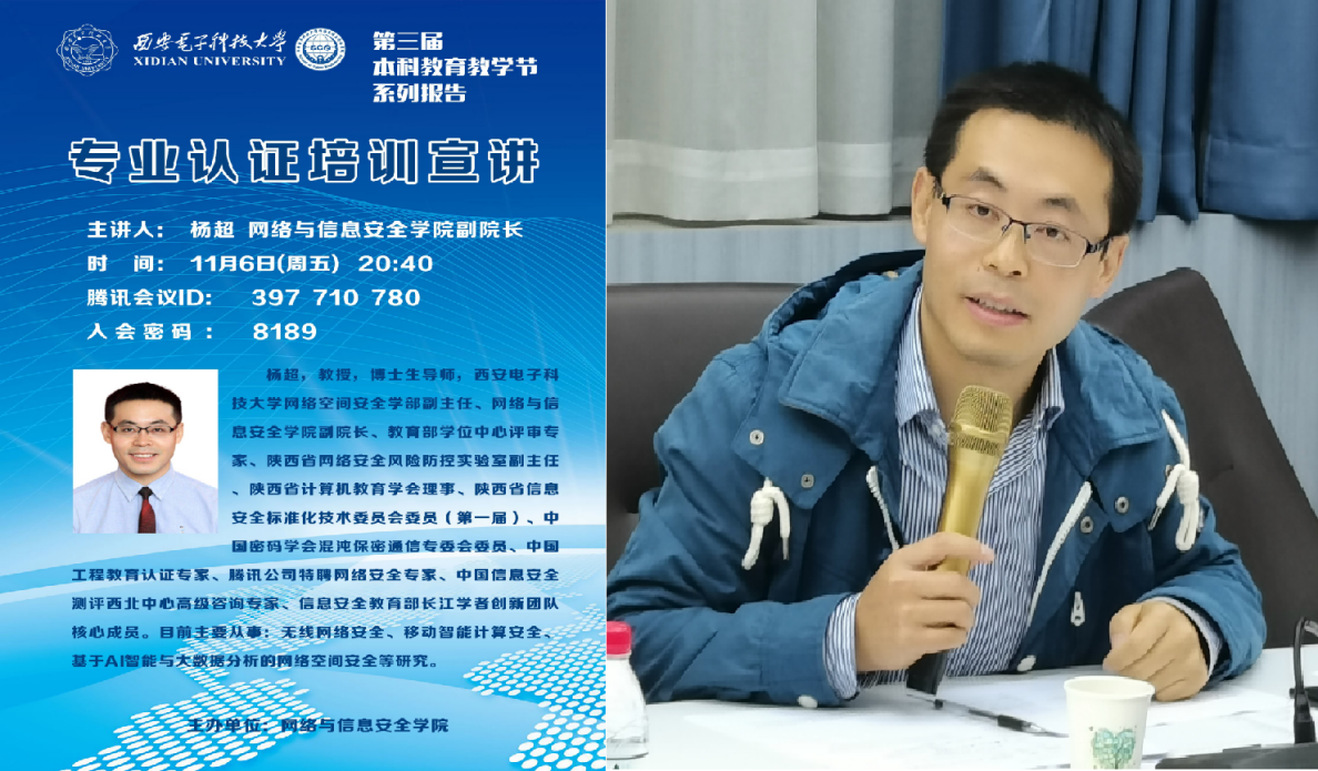 依托本届教学节,公司副经理杨超教授于11月6日就如何提升OBE理念下的工程教育为全院教师进行了系统的培训;杨超副经理强调,作为国家一流网络安全建设示范单位和国家级一流本科专业建设单位,全院教师要以专业认证为抓手,构建“以员工为重、以结果为导向、以持续改进为保障”的OBE教学理念,落实到培养目标制定、毕业要求达成、课堂教学大纲制定的方方面面,着力提升专业建设水平,提高育人成效。