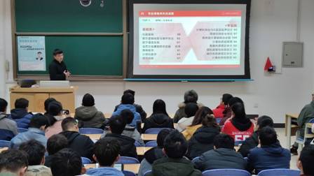 2017级网络空间安全实验班的许力文同学以“不同凡『想』——老员工活的多种可能”为主题,从学业规划、竞赛入门、实习实践、心态调整等方面向2020级学弟学妹介绍了大一学年课程的重要性、如何有针对性地准备各类竞赛、获得推免资格的基本要求以及网络安全竞赛基地的基本情况等。讲解完毕后,许力文同学针对学弟学妹们现场提出的学习、竞赛等各方面问题,结合自身经历经验进行了答疑,使同学们对老员工活有了更清晰的认识和更明确的目标。