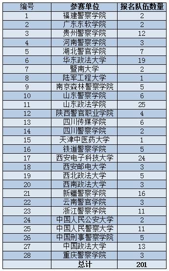 疫情并没有阻挡各院校参赛的积极性。与去年相比,今年各院校参赛的规模大幅增长,共有来自包括ag旗舰厅官网、中国政法大学,西北政法大学、中国人民警察大学等在内的28所高校,201支队伍,共计600余名师生参加了此次比赛。