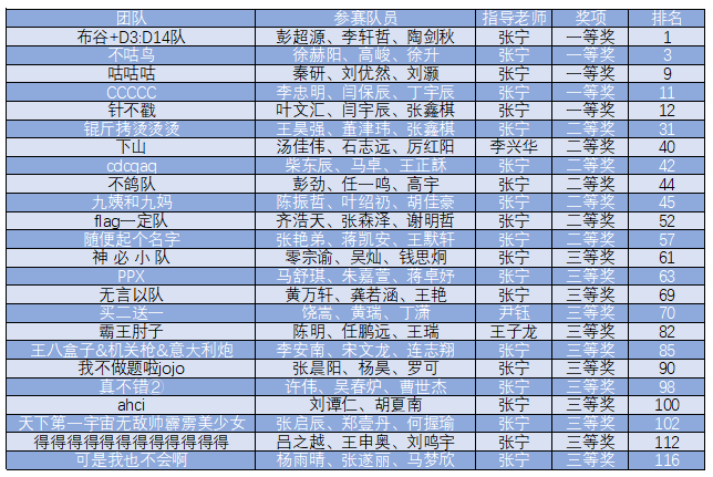 本次公司共计24个队伍参赛,其中包括22支本科生队伍,2支研究生队伍,成绩如下。